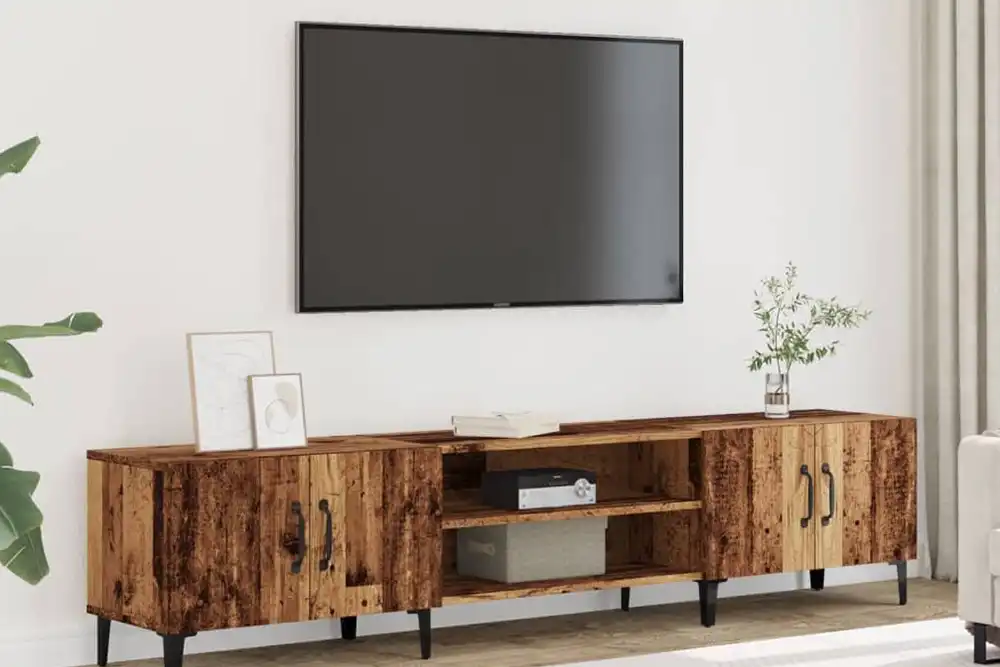 Bring natural charm to your interiors with a rustic wooden TV console by M.A Blinds and Curtains. Ideal for homes in Kerala, this design combines sturdy construction with warm, natural textures, creating a cozy, inviting atmosphere. Perfect for rustic, farmhouse, or eclectic interiors, it offers ample storage and a touch of timeless elegance. Our personalized service brings samples and ideas to your doorstep, ensuring a seamless design process. Trust M.A for wooden TV consoles that combine functionality with rustic sophistication.