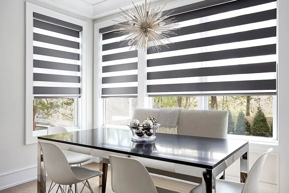 Zebra blinds by M.A Blinds and Curtains combine sheer and solid fabric strips, providing adjustable light control and privacy with contemporary flair. Their dynamic design adds depth and functionality to interiors, making them perfect for modern homes and offices in Kayamkulam and Thiruvananthapuram. Easy to operate and maintain, they offer flexibility for varying lighting needs while creating a stylish, layered look. Trust M.A Blinds and Curtains for custom zebra blinds in Kerala, where innovation meets style.
